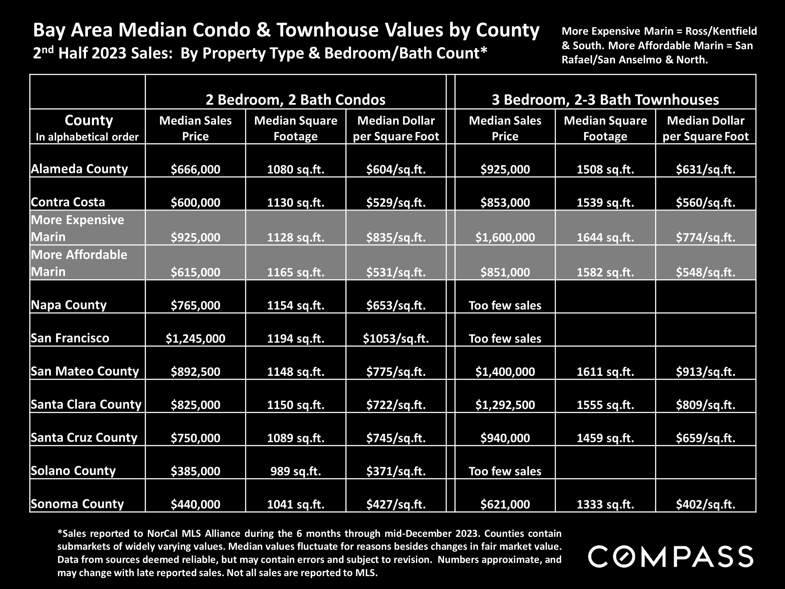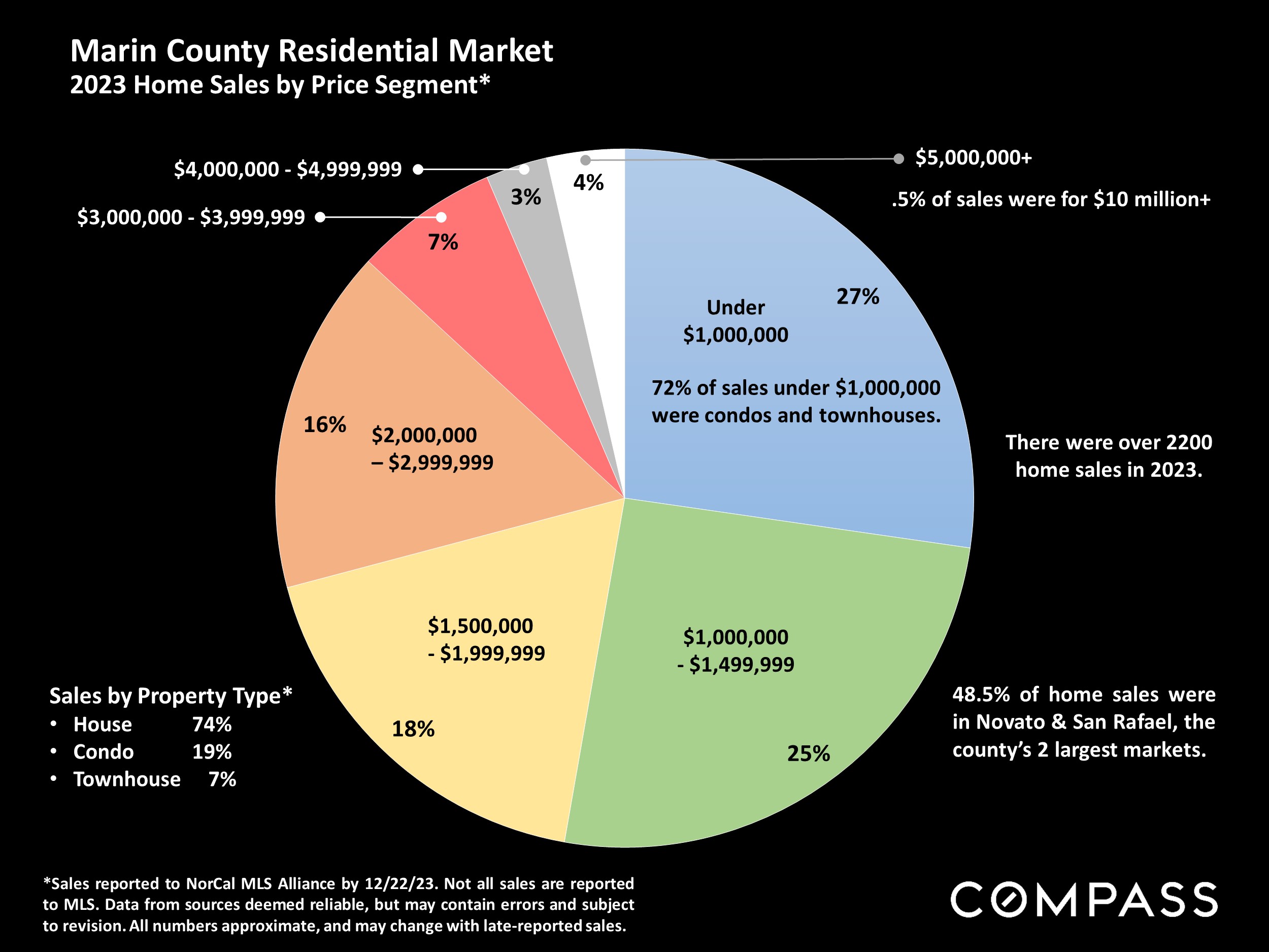 How is the Marin real estate market? In the last two months of 2023, the average weekly 30-year mortgage interest rate dropped from 7.79% to 6.61% (We’ve had clients secure Jumbo rates as low as 6.25%). With the fall in inflation this past year, the Fed is widely expected to begin dropping its benchmark rate, probably in multiple steps, in 2024. The consensus forecast among analysts is for further declines in mortgage interest rates. After its end-of-year rally, the S&P Index was up 25%, and the NASDAQ up 45% in 2023 (though it ticked down in early 2024). This plays a major role in Bay Area household wealth. As interest rates fall and confidence rebounds, the big question is when buyers and sellers will return to the market in normal numbers. Currently, the trend is positive.